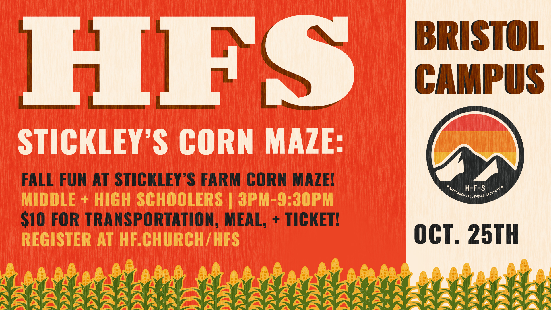 Join us Bristol middle + high school students for a Fun Fall Trip! 🎃 Enjoy community + FUN seasonal farm festivties at Stickley's Farm! 🚜🌽 Cost is $10 for ticket, dinner, + transportation. Parents drop off at 3pm Bristol Campus. 🍕 Please bring extra money for snacks. Parent pick up at Bristol Campus at 9:30pm.